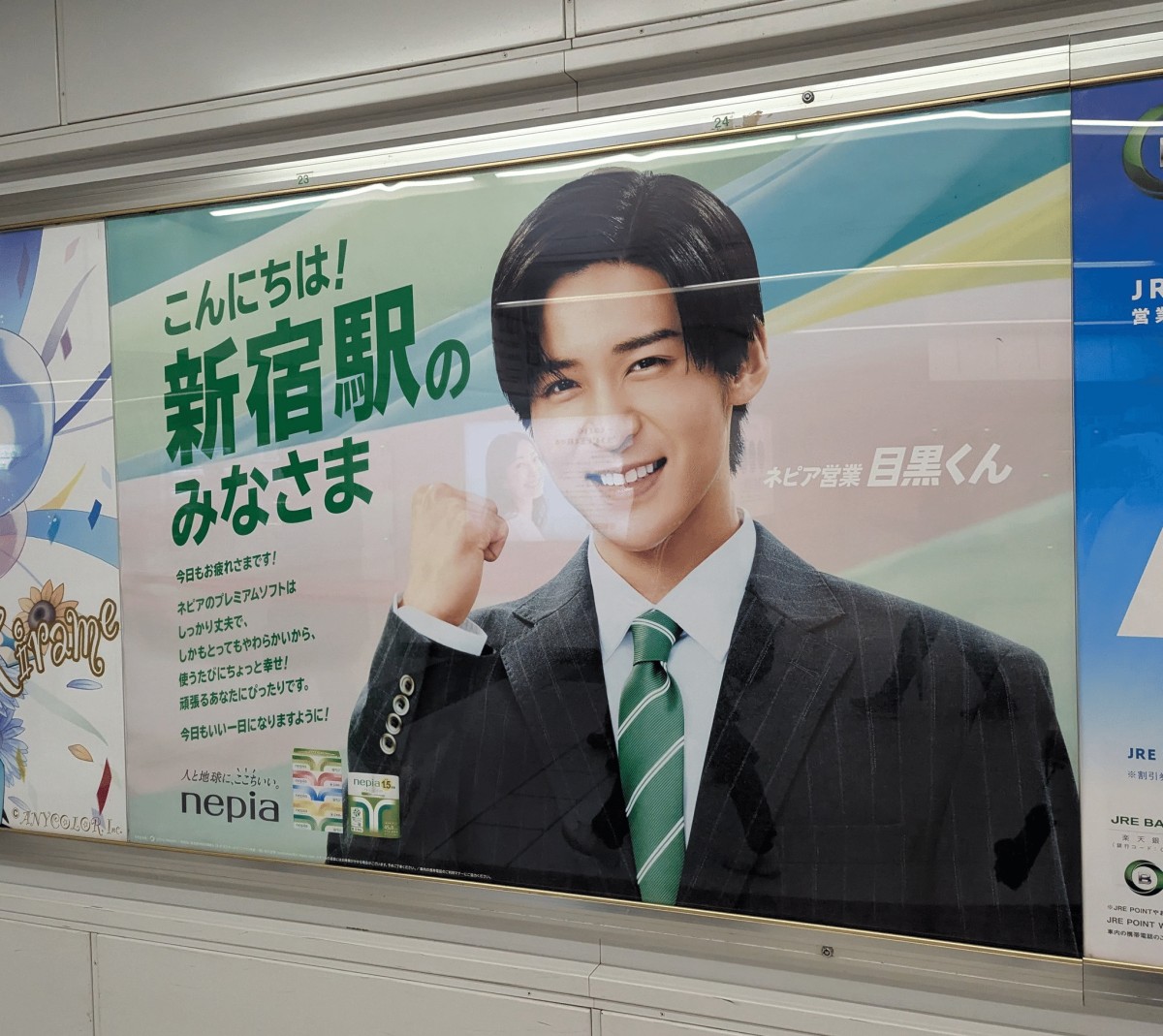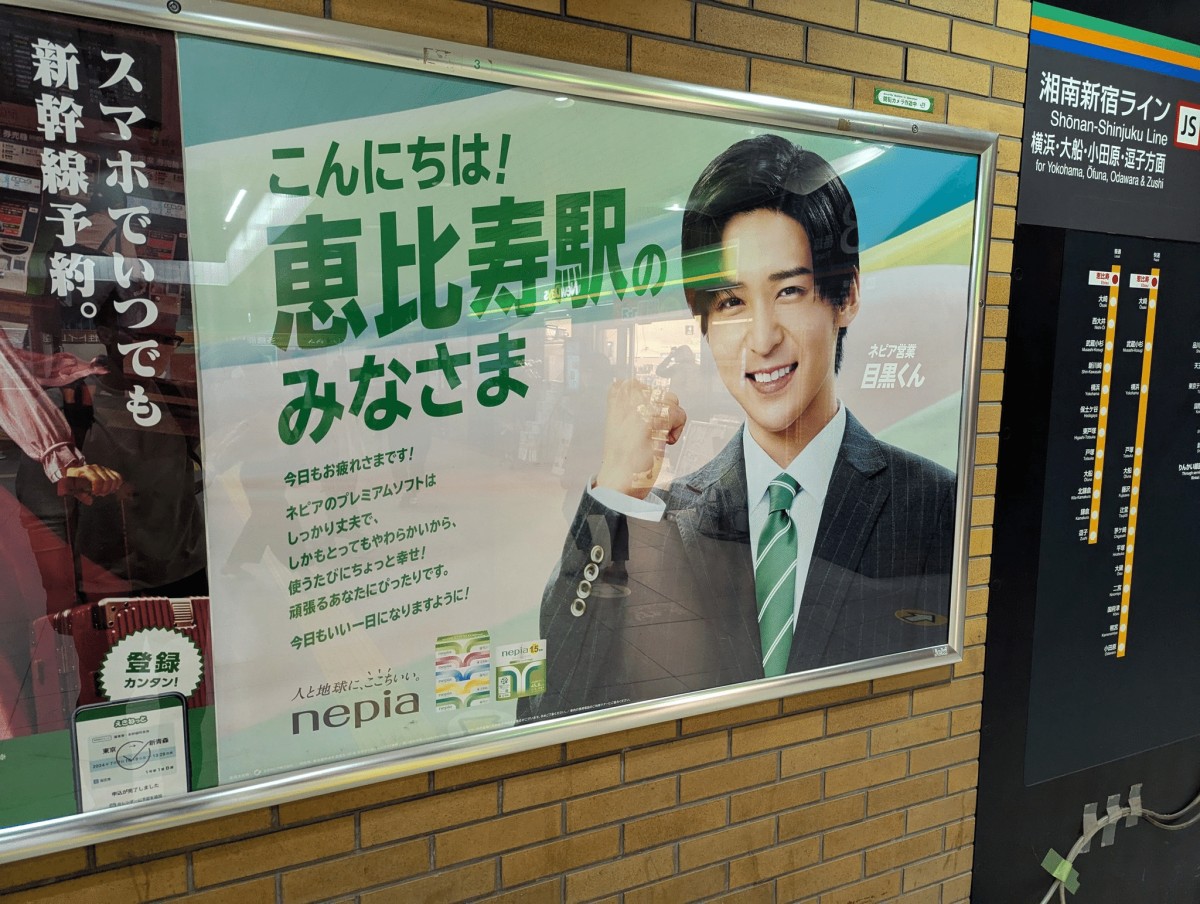 先週、都内各所の駅でめっちゃ爽やかなポスター発見。ネピアの広告が池袋、新宿、中目黒など各駅ごとに異なるバリエーションが展開されていました。